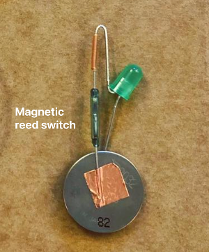 Reed switches are made of glass tubes, so if you look into one with a magnifying glass you should be able to see two flat metal wires almost touching inside. If you bring a magnet near, they stick together, and the kids can run across. If you put a magnet at the end of a chopstick, and hide a reed switch -controlled circuit in a toy, you can make the toy respond to a "magic" wand.
