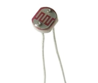 - Attach wires to each leg of the photoresistor with the copper tape. Fold firmly to make a good connection.