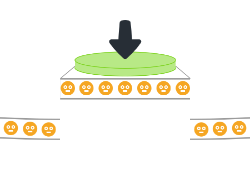 Sometimes you want to control how things fade, like the brightness of a light or the volume or pitch of a sound. Potentiometers are the knobs or sliders that you often find on audio equipment or dimmers on walls. What they do is split the corridor between two exits. (It's called a "voltage divider" for this reason.) This is also why they have three legs instead of two. The two corridors share the middle leg and turning the knob lets more kids out one leg and less out the other.