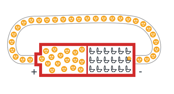 How many kids are going through the corridor each second = motivation to reach the toilets / corridor width