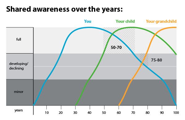 Made this in my late twenties based on no hard statistics, just trends in my own family, as a rough way of exploring the best overlap of intergenerational conversation between equals.