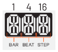 - 1, 4, 16 are the intervals that match BAR, BEAT, and STEP, which are the first, second and third digits in the display. You can think of them as 1, 10, 100. As in 1 BAR is made of 4 BEATS which are made of 4 STEPS each. (4x4=16)