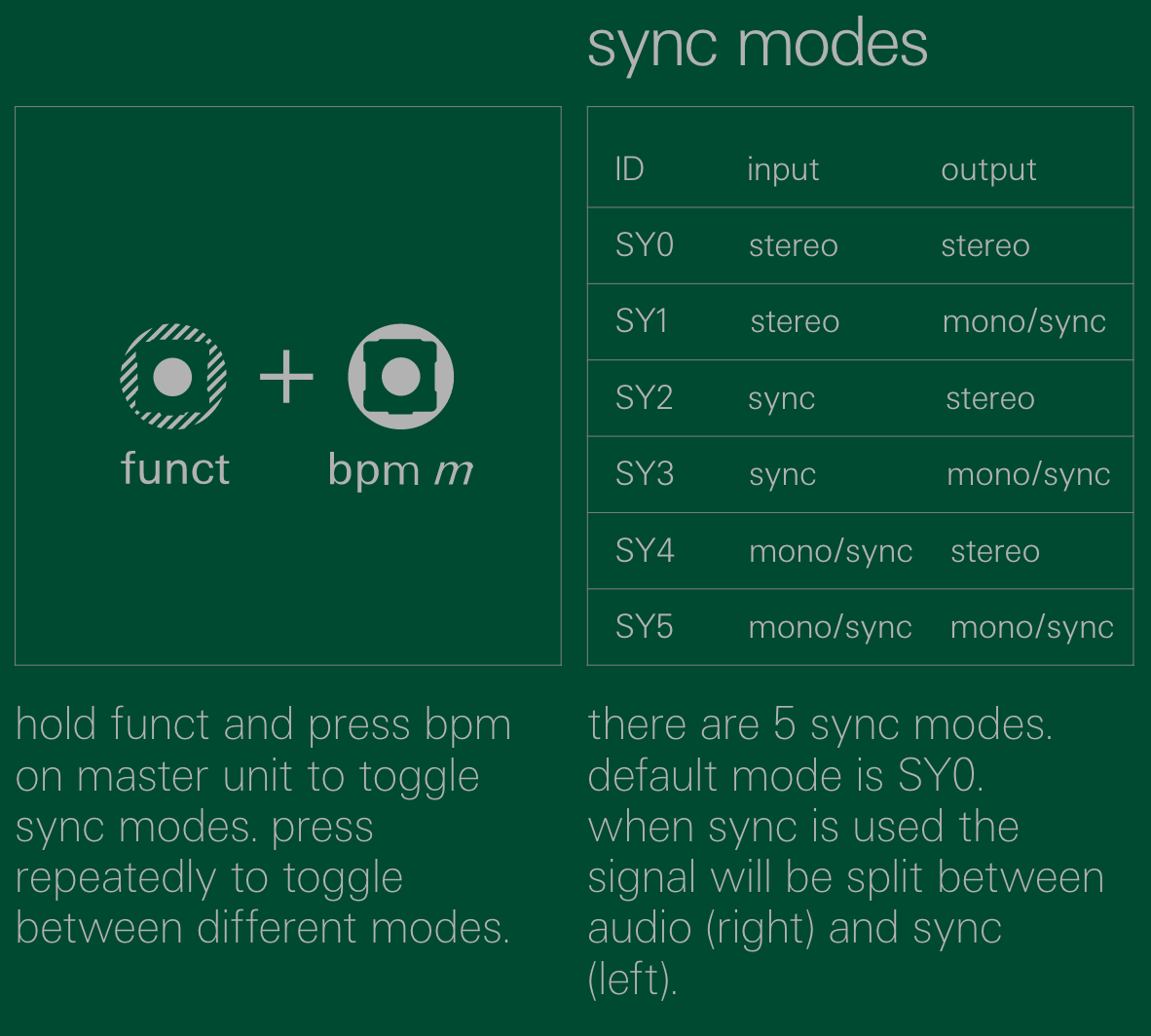 I always tend to forget copy, clear and sync mode codes. Usual setup: [ SY1(master) - SY5(slave) - SY4(slave) ]