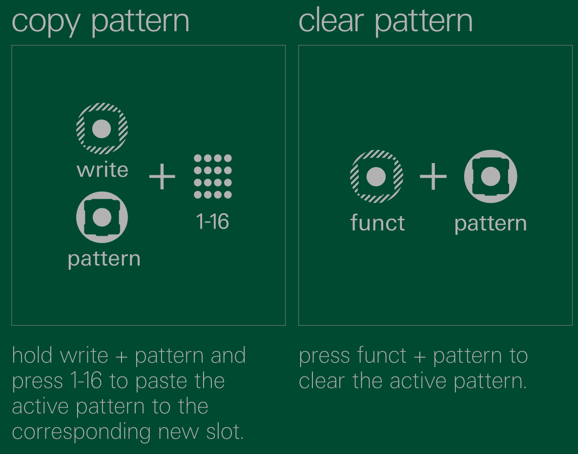 - hold write while playing and turn A and B knobs to record automated sound parameter changes.