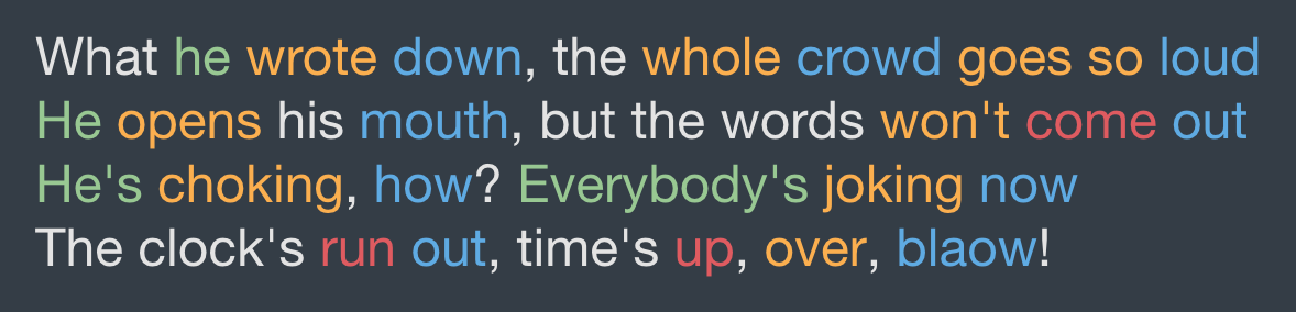 - Choose a color, click on a word or two (if the same word exists elsewhere in the text, that word gets the same color)