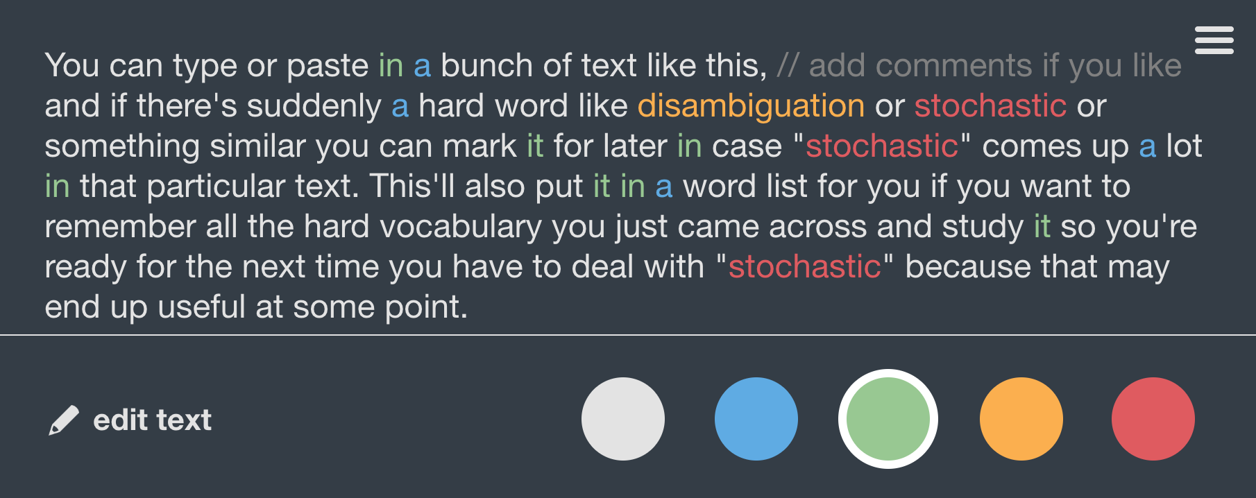 - Use the same word lists for the next document you want to read, so it'll autocolor it for you