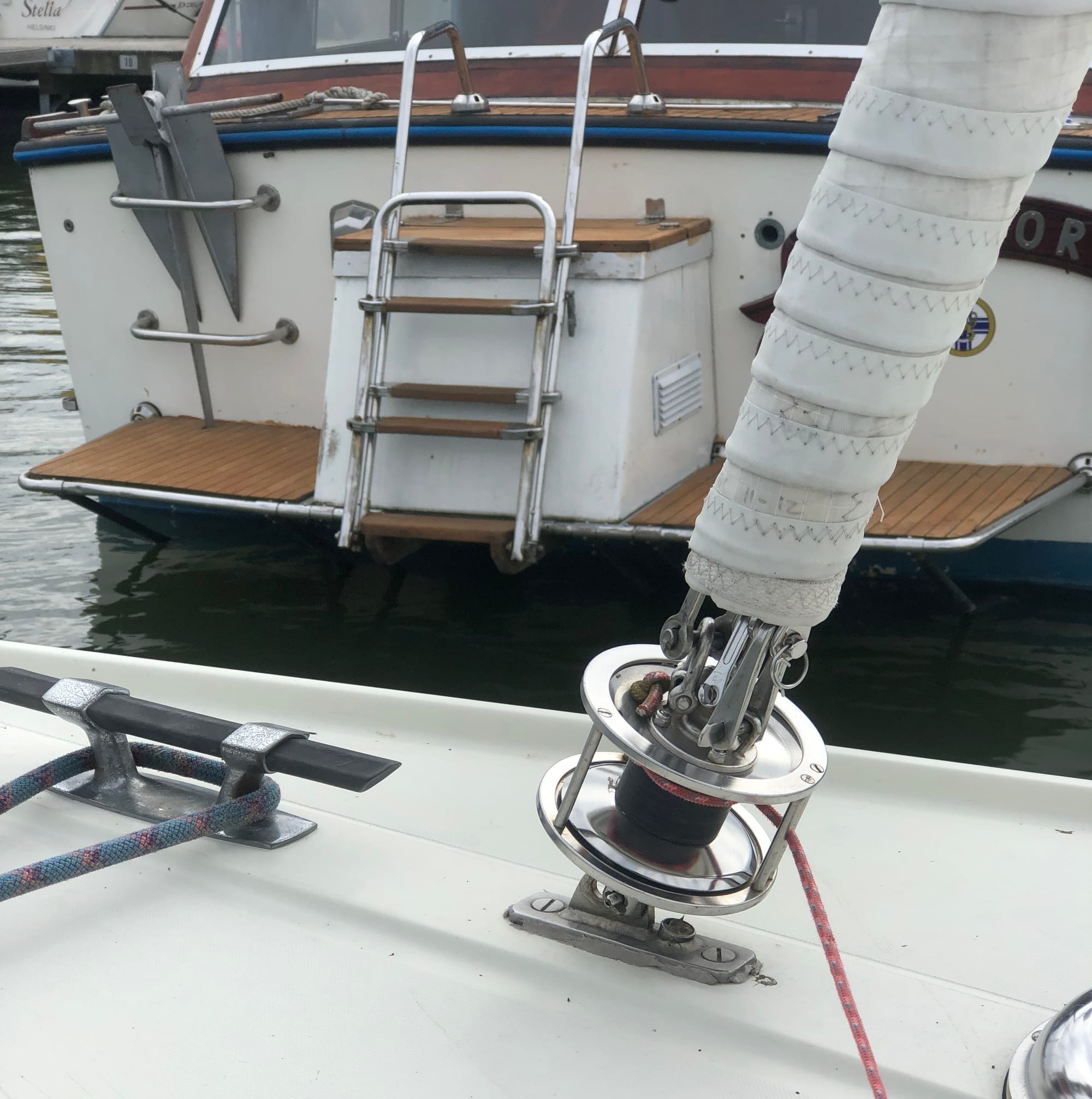 The boat has a roller furling jib. It is structurally profile-less, so it doesn't impair windward performance.